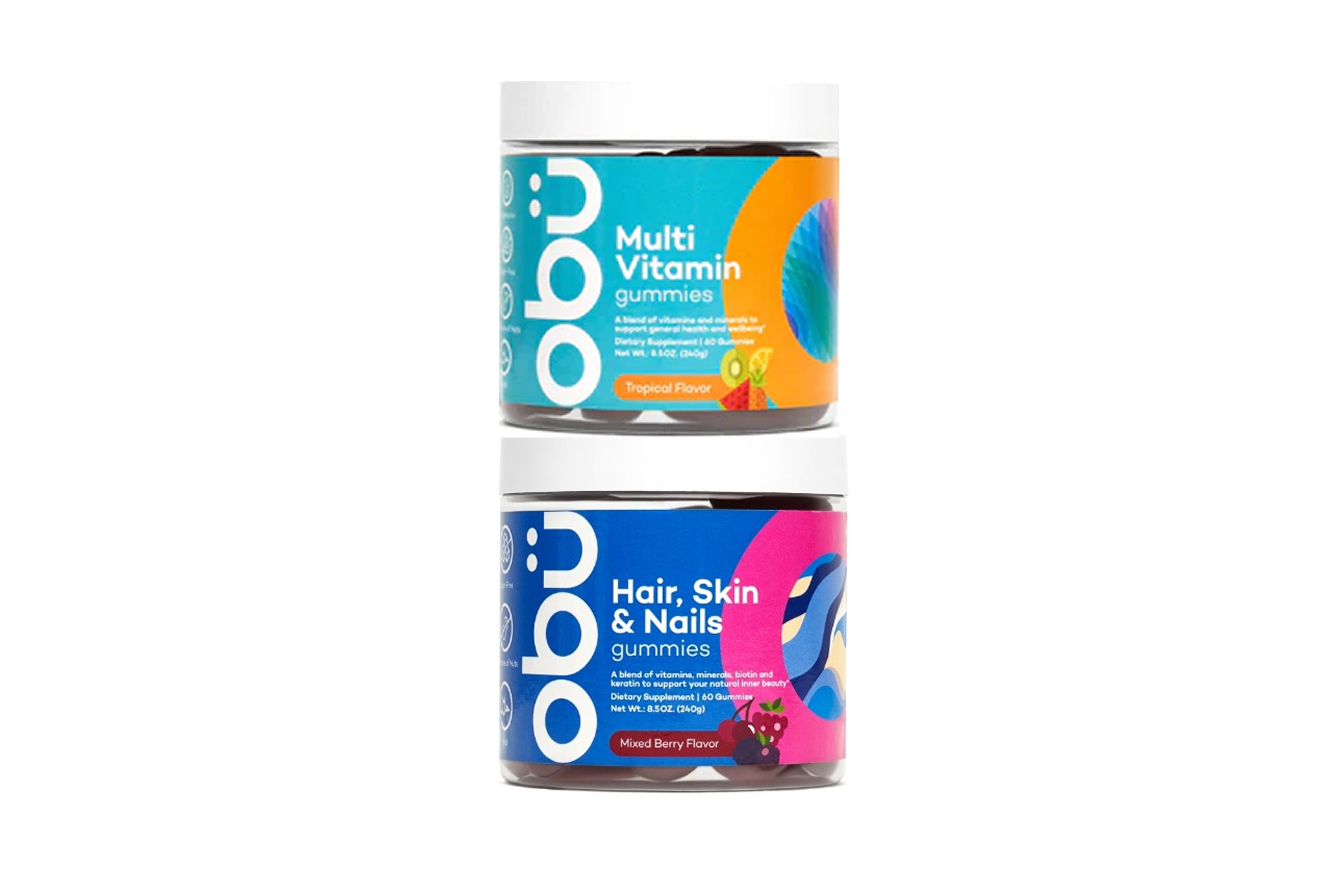 حلوى OBU للشعر والبشرة والأظافر – البيوتين لتخليق الكيراتين، وفيتامين C لتكوين الكولاجين، وفيتامين E للحماية من أشعة الشمس، والزنك لتجديد الخلايا.